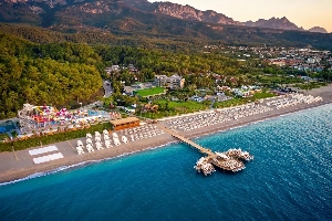 Эко-отель расположен в районе Белек, в местечке Богазкент, в 40 км от аэропорта, на первой береговой линии. Комплекс бассейнов, аквапарк для взрослых и детей, рестораны и бары. В течение дня — активная анимация. Рекомендуем для семейного отдыха.